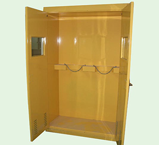 配置有镀锌层板,防液漏,防腐蚀,最 大可承托400lbs的钢制安全罐。柜身底部50mm高的防漏液槽最 大可能的防止化学液体的外溢。柜体内外都经过静电喷塑,最 大程度的增加抗化学腐蚀的能力,防腐蚀,防锈。防火装置的通风口,位于柜身的两侧。